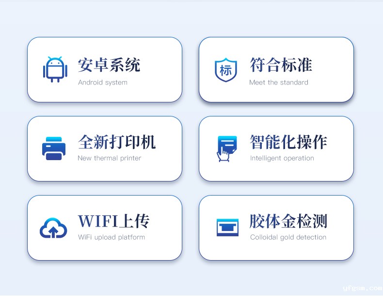 1、安卓智能操作系统,采用更加**和人性化操作,仪器具有wifi联网上传、4G联网传输、GPRS无线远传、网线连接功能,快速上传数据。 | 2、智能化程度高,仪器具有自检功能:具有开机自检和调零功能,具有自动检测重复性功能。 | 3、新一代高速热敏打印机,检测完成可自动打印检测报告和二维码。 | 4、仪器带有监管平台,数据可局域网和互联网数据上传,检测结果直接传至食品安全监管平台。进行区域食品安全监管及大数据分析处理与数据统计,检测区域食品安全长短期动态,达到食品安全问题预估、预警 | 5、一体化便携式快检设备,满足现场及流动检测使用需求,能够在同一软件下实现所有检测项目的检测,并可通过同一窗口直观显示检测结果。 | 6、胶体金模块检测方式:轨道式自动传输扫描,检测完成后自动退出检测卡。 | 7、仪器内置摄像头拍照,可显示金标卡实时图像,系统自动分析并呈现出CT曲线图,CT线自动识别,无需手动调整。 | 8、仪器具有品类多种类样品菜单库,可灵活选择检测样品,不同的检测通道可同时检测不同的样品项目。 | 9、样品处理简单省力,整体操作快速、安全、便捷。 | 10、高灵敏度,高检测精度,高重复性精度,扫描式高精度光学传感器。 | 11、内置强大的数据库,可在仪器上直接选择样品名称、检测指标、送检单位等信息,也可在仪器上直接编辑录入样品名称、检测指标、送检单位等信息并保存进样品数据库。 | 12、仪器具有自身保护功能,可设置用户名及密码,防止非工作人员操作等。 | 13、仪器具有重新校准、锁定、恢复出厂设置功能。 | 14、结果判定线可修改,对照值标定值可保存,断电不丢失数据。 | 15、兼容市场上所有的胶体金卡,使用耗材不受限制,极大增强用户使用体验。 |