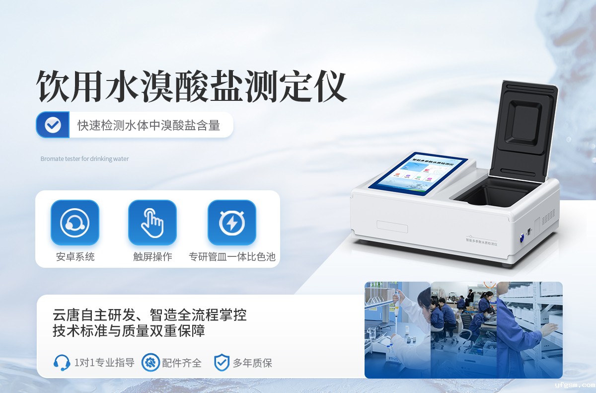 水质溴酸盐快速检测仪是一款检测快速检测水体中溴酸盐含量的仪器,适用于经臭氧消毒后的矿泉水、净化水、纯净水和各种包装饮用水中溴酸盐的定量检测。